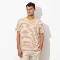 – Yarn dye stripe- Vintage wash- Back neck and shoulder seam cover stitch- Recycled polyester woven labels- FSC® approved paper swing tags