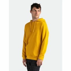 Solid dyed and garment washed, hooded, ribbed at cuffs and hem, front pocket, recycled polyester woven labels, fsc® approved paper swing tags